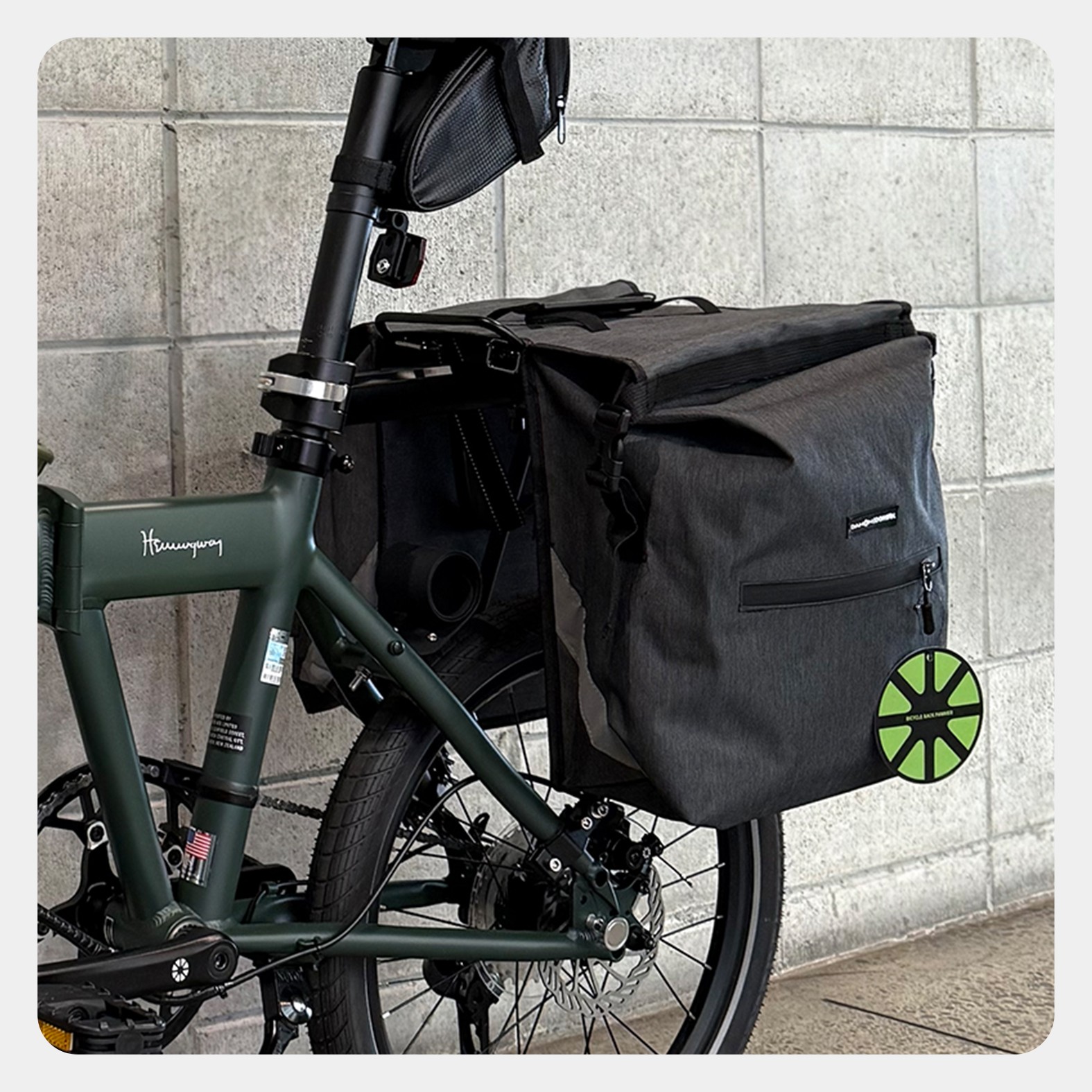 Durable cationic Oxford twin panniers with reflective panels, waterproof zippers, and easy rack mount/removal. waterproof & moisture proof, Durable & wear resistant.